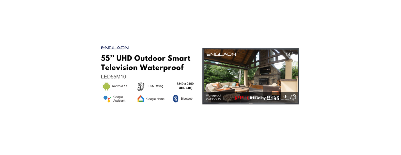 ENGLAON 55’’ 4K Outdoor SMART IP65 Waterproof LED TV for Full Sunshine Areas